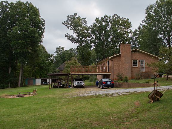 Looking for that beautiful little country home with a nice piece of ground, yet convenient? Look no further! Adorable, Updated Full Brick Ranch with 3BRs, 2.5Baths, Full Basement all situated on 2.656 Acres with Beautiful Mature Trees complete with a tire swing that will remain.Meticulously maintained property and home. Updated, Kit/Dining Combo with a Wood Burning Masonry FP, All Kitchen Appliances Remain plus a Refrigerator in the Bsmt .Hardwoods in most of the Main Level. Kitchen has Tile. Primary BR with Full Bath. Two other bedrooms, One with built-ins and Hall Bath complete the main level.Full Bsmt offers a Laundry Room with a 1/2 Bath and Polished Concrete Flooring.Wood Burning Stove will remain. Currently set up with a separate entrance for a beauty shop. Sink/Equipment will be removed at closing. Plenty of Storage area. Dbl French Doors replaced the original Garage Door. Private Well and Septic. Lg Rear Deck. Beautiful Corner Lot. Plenty of room to Garden. Large Outbldg/Shed.