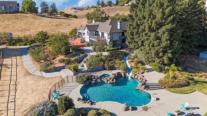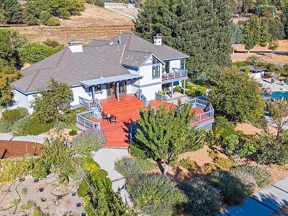 Welcome to Three Springs Ranch, an exclusive gated community nestled in the serene foothills of Mt. Hamilton, just above Silicon Valley. This private enclave of only 33 homes offers a coveted fresh-air lifestyle with expansive lots, perfect for gardening enthusiasts and horse lovers alike. This beautifully designed tri-level home boasts 4 spacious bedrooms and 3.5 baths, highlighted by vaulted ceilings in the living room, a formal dining area, and a generously sized kitchen with informal dining space. The primary suite offers a luxurious retreat, soaking tub, stall shower, granite countertops, and walk-in closet. The cozy family room with a fireplace overlooks scenic hillsides and opens up to an inviting outdoor oasis. Ideal for entertaining the home features expansive decks, a sparkling heated pool with a spa and slide and fenced garden areas with raised beds for growing vegetables or flowers. A charming playhouse adds versatility, doubling as a potting shed or hobby room. Set on relatively flat, usable parcel of land rare for a foothill property this home offers a unique blend of privacy and accessibility. Enjoy the best of foothill living with room to breathe, just moments away from the bustling heart of Silicon Valley.