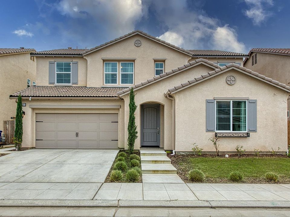 Welcome home to this gorgeous 2019 two-story 5 BR, 3.5 BA Wathen-Castanos Davis model in North Artisan Place with stunning views of the Sierras. Featuring owned solar--4.8 kw, 15-panel system) and over $85,000 in origional builder upgrades. You'll find multiple living spaces, including a large extended great room w/vaulted ceilings and floor-to-ceiling windows, a living room/formal dining room and an oversized loft. The isolated bedroom downstairs has an en-suite bath and is perfect for guests or a 2nd owner's suite. The open concept kitchen is an entertainer's dream w/beautifully patterned backsplash, quartz countertops, overhead recessed lighting, an oversized center island w/ breakfast bar, stainless steel appliances, and a spacious breakfast nook large enough for a formal setting. The butler's pantry has beautiful quartz countertops and ample storage space. Upstairs are four additional bedrooms, plus a large loft which can be utilized as a media room, game room, or office. The isolated owner's suite is a private retreat and the en-suite bath features two separate vanity areas, a stand-alone soaking tub, a beautiful walk-in shower, and a large walk-in closet. The backyard is perfect for entertaining with an extended main patio, stamped concrete, covered and elevated deck, fire pit, and putting green. There's also a raised flower bed and garden boxes. Located in the award winning Clovis Unified School district, with nearby parks and trails.