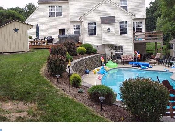 Beautifully maintained Colonial home nestled on a premium lot backing to wooded open space in the sought after Garnet Valley Community of Garnet Hills and the top ranked Garnet Valley School District. This spacious home features countless amenities beginning with neutral but warm decor and all new carpeting, an inviting stone front and covered porch leading through the center hall entrance that warmly greets you into an open floor-plan including a bright living room with lots of natural sunlight through the front bay window, a formal dining room and a spacious kitchen that includes a wrap around counter/breakfast bar and a breakfast room leading out to a side deck with a relaxing hot tub and side yard. A stunning and cozy family room is completed by vaulted ceilings, a gas fireplace, and walks out through glass sliders to an upper deck looking out over the private tree lined backyard and beautiful pool, all backing to open space along the rear and side yard. On the upper level the master suite with vaulted ceilings is spacious and has an en suite bath and full walk in closet. Three additional spacious bedrooms and a full hall bath complete the upper level. The lower level is finished with a great room and a half bath providing lots of extra elbow room for your family and gatherings when needed, and walks out to a ground level patio leading to the pool. The yard is fenced and there are two sheds for lots of storage aside from the two car attached garage with pull down stairs leading to storage. Centrally located in the heart of the Garnet Valley Community, this home is conveniently located with easy access to all major commuting routes to corporate centers, shopping, and Philadelphia, Wilmington and NYC.