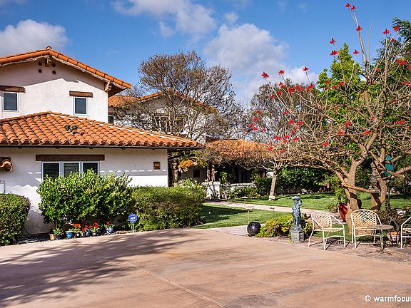 Located in Bonsall, this gated 2-story custom Mediterranean-inspired estate features 5 bedrooms and 5 baths in 5,820 square feet of living space. The gourmet kitchen will impress even the most experienced chef with its Viking 6-burner grille/griddle, double ovens, microwave, German bread oven, 2 dishwasher, 2 warming ovens, large refrigerator/freezer, wine cooler, special stainless steel prep center, granite counters and large custom-built breakfast nook. The family room boasts a media center and fireplace and the office features extensive built-ins. There is also an award-winning wine cellar. The spacious second floor showcases a bonus room, bedrooms, baths and a rotunda retreat area. The palatial exterior features a vanishing edge pool with spa, large patio with custom BBQ, outdoor fireplace, large front veranda, winding pathway, gazebo and tucked-in sitting areas. SPECIAL BONUS: Flower growing business for additional income; foundation in place for future guest house or barn.