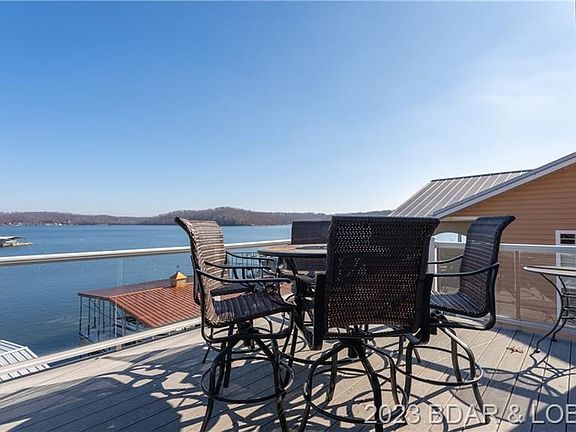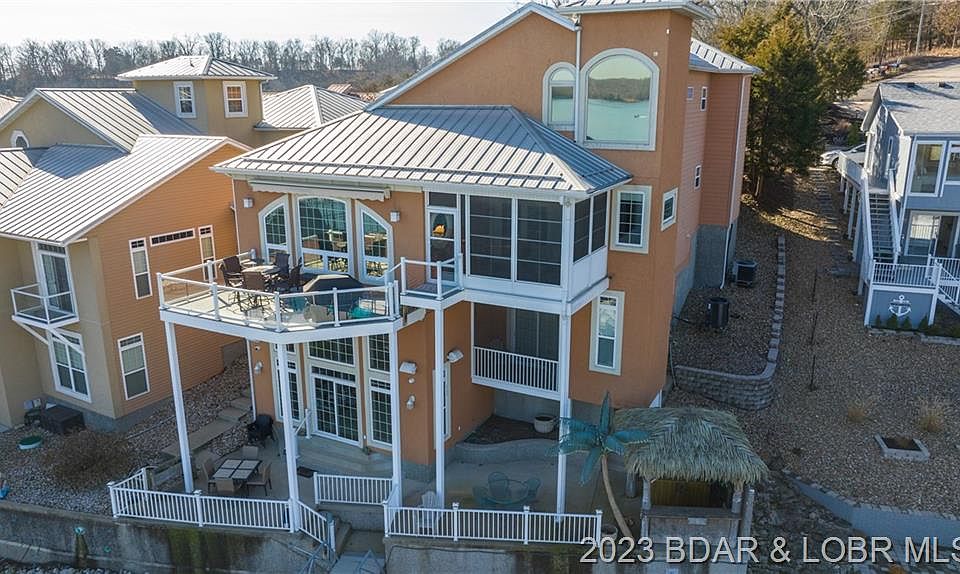 All work and no play' NO WAY!! This stunning Tuscany-inspired custom home embodies luxury in an entertainment haven with a low maintenance exterior and lot, so you can spend your time enjoying every moment at the lake with family and friends. Tucked within a small inlet, the location affords protection while offering very impressive main channel views from multiple decks, the patio and the lakeside Tiki Bar. Architectural features abound with gathering and entertaining areas on all three levels. The expansive vaulted great room boasts a unique floor to ceiling fireplace, wet bar and stone-encased wine room and flows openly into an elevated chef's kitchen with dining nook and desk. Panoramic lake views are particularly spectacular from the formal dining room, enclosed three seasons room, lower living areas and the master suite, which includes a jetted tub, full body shower and private second laundry. Choose to simply luxuriate and unwind or venture to the many nearby hot spots.
