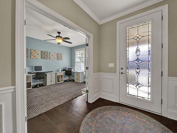 Magnificent home with 3 car garage in desirable neighborhood. Perfect open floor plan that brings the Gourmet Kitchen and Great Room together. Wide plank flooring throughout the first floor. The Kitchen has a coffered ceiling and large island that seats four. It has stainless steel appliances, ample cabinetry, tile back splash and a gas stove. Huge walk in kitchen pantry. The large Office has French doors. The mud room is perfect to keep bags and shoes away from the main entertaining areas. Beautiful Master Suite with shower and tub. The second floor has a large loft and great sized bedrooms. Third floor media/bonus room, 5th bedroom and full bathroom. The large covered back porch has a built in fireplace and a hot tub. The beautiful flat yard is fenced and has been professionally landscaped.