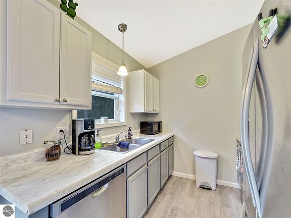 Perfect starter home and move in ready! This two bedroom, one bath, beautiful ranch home with a full unfinished basement, offers stainless steal appliances, newer furnace and water heater. The home has been well cared for and is ready for someone to enjoy the fenced in back yard and do some entertaining. The basement has the potential for an additional bedroom or family room and is plumbed for a second full bath. This home sits on a .30 acre lot which has plenty of room to build a two car garage. Just outside of Traverse City you are within minutes of Interlochen Arts Academy, Menards, and the Pit Spitters Stadium!