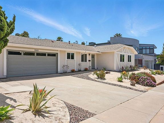 Experience elevated single-level living in this fully remodeled University City gem. Situated on an expansive 11,700 sq ft lot, this 3 bed, 2 bath home showcases a wide open floor plan with vaulted ceilings, luxury vinyl plank flooring, and abundant natural light throughout. The designer kitchen is the heart of the home, featuring Calacatta quartz waterfall counters, subway tile backsplash, two-tone cabinetry with gold accents, and a premium stainless steel appliance package—perfectly blending modern elegance with everyday functionality. The spacious primary suite offers a peaceful retreat with a walk-in closet and a spa-inspired bathroom adorned with bold black, white, and grey designer tile, quartz vanity, and a sleek low-step glass shower. Enjoy seamless indoor-outdoor flow to the private backyard with a covered pergola, large grass area, and mature privacy trees—ideal for relaxing or entertaining. Additional upgrades include newer dual-pane windows & slider, recessed lighting, new HVAC & Ducting, new electrical panel and electrical wiring, new water heater, and an epoxy-coated garage floor. A rare combination of style, space, and location—just minutes from UTC, La Jolla, and top-tier conveniences.