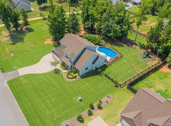 Beautiful home nestled on 1 Acre lot with tons of upgrades & amenities. Welcoming open layout filled w natural sunlight, tall ceilings & desirable master down design. Spacious dining area flows into great room w vaulted ceilings & gas fireplace. Modern Kitchen w 42" cabinets, granite countertops & subway tile backsplash, custom coffee station & accented with butcher block counter space. Pre-finished hardwoods throughout main level & upstairs hallway. Three large secondary bedrooms & full bath on upper level. Two large walk in attics for all your storage needs. Fully finished Garage/Workshop is heated & cooled w ductless system. Private backyard oasis features a covered patio w ceilings fans, in-ground pool, outdoor fire-pit area & play area for the kids. Separate fenced yard includes 240sq ft shed w lien-to set up for outdoor kennel to safely house the family pets. Shed is fully wired w well water access. Located w/in York County school system & minutes from downtown historic York.