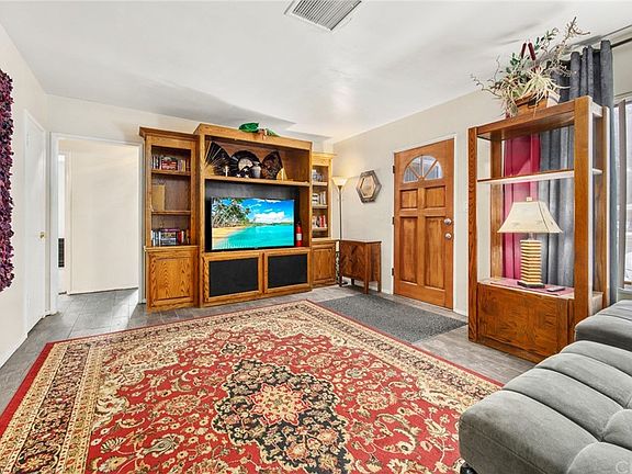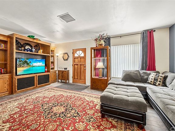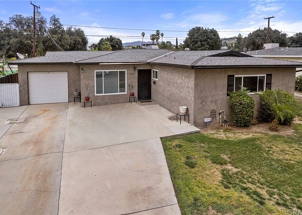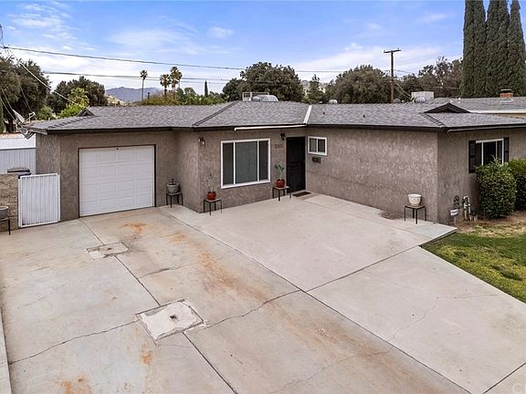 Tree lined street in a peaceful neighborhood welcomes you to this comfortable mid-century home. Nice lawn in front and driveway space for guests or RV parking. Generous living room area greets you as you enter. Kitchen features granite counter tops and paneled oak cabinetry, and opens conveniently to the sun room and to family living area as well. From the sun room you may walk directly onto ample grassy area in back to enjoy time with your friends, family, or guests, or let the pets play. Perfect for barbecues and easy relaxation on the covered patio. Original floor plan is designed for four bedrooms, and although fourth bedroom has always been used as an office it is easily convertible back to its original use as a bedroom. Complemented by faux wood tile throughout. Ceiling fans in all bedrooms and office. Conveniently close to shopping and dining at the Riverside Plaza, Poly District schools, California School for the Deaf, and easy freeway access. Only a short drive to UC Riverside. Sun room not included in listed square footage.