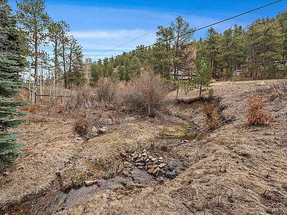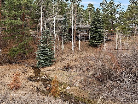 Nestled on nearly 2 acres featuring a walking trail and picnic area backing to open space, this tastefully updated home offers the perfect blend of privacy, convenience, and natural beauty. Located just 10 minutes from I-70 and 15 minutes from HWY 285, your mountain home has quick access to Denver and the DTC, all while being only 15 minutes away from Red Rocks Amphitheater, a favorite Colorado music venue. Downtown Evergreen destinations, restaurants, music, galleries and the lake are minutes away. A private picnic area tucked among the trees and rock formations evokes the magic of a peaceful woodland setting complete with deer, elk, hummingbirds and the sweet scent of pine needles. Adding to its tranquility, a year-round, spring-fed stream meanders below the house, creating a soothing soundtrack of gently burbling water—perfect for unwinding on warm summer evenings on the expansive deck. Designed for year-round comfort, this home boasts a new Kuma woodstove, capable of heating the entire house should mountain weather bring a power outage. Recent upgrades ensure peace of mind, including a new hail-resistant roof, freshly stained exterior and decks, new asphalt on the south-facing driveway, and a new water heater. Additional modern conveniences include appliances less than three years old, updated lighting, high-speed internet, and a reverse osmosis water treatment system. The spacious primary suite offers a private balcony, walk-in closets, and an updated en-suite bathroom with a walk-in shower. Whether you're entertaining or simply enjoying the serenity of nature, this home provides the ideal setting to relax and reconnect. Move-in ready and designed to impress—schedule your showing today and experience the comfort and convenience of this lovely mountain home.