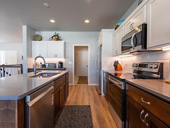 This better than new rambler is located in the sought after South Fargo Development of Prairie Farms! This home features four bedrooms, three bathrooms, has an open concept kitchen/living/dining area, and large family room/rec area. You'll love the Spacious master bedroom/bathroom features walk-in closet, dual vanity and tile surround shower. This huge backyard is fenced and has a patio and concrete pad poured for future shed. The garage is finished and heated! Don't miss out on this one, schedule your showing today!