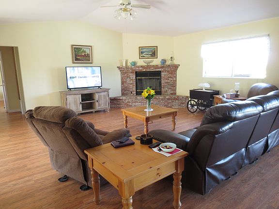 WOW! What a beauty. Youve waited for this-2.5 acres, peace & quiet, fabulous views, single level 4 bed, 3 bath Country Modern, fully remodeled with designer finishes. Just 5 min to Hwy 15 for an easy commute. Yet, those 5 minutes take you to peaceful country living. Spread out and enjoy the land with citrus and avocado trees. Bring your RV and toys. HORSES!!! Brand new kitchen and baths. This is a great floor plan so it lives much larger than 2190 sf. Prettiest country home in N. County<$800K. Hurry! As you relax after a challenging day at work, you will love the lovely sunsets and sunrises from this spectacular 800 sf deck. The panoramic views from this brand new deck are of the mountains to the north. Entertain your friends and family or just kick back and enjoy the solitude. Not only is this home remodeled, it is done with attention to detail with designer finishes throughout. You can show off your new vinyl plank flooring, white shaker cabinets with black quartz countertops, black cabinet hardware, new black door handles and hinges, new designer lighting throughout, custom barn doors, light gray walls and bright white custom baseboards, dry brushed real brick fireplace, ceiling fans in all rooms and a designer inspired deck complete the look. The floor plan is well laid out with oversized bedrooms, a fabulous open concept huge great room with a 5 ceiling fan. You can access the large 20âX40â deck from the great room and the master bedroom. Guests or extended family will enjoy the separated guest bedroom complete with a full bath. on the opposite side of the home from other bedrooms. You will marvel at the walk in storage space under most of the home! You can grow a great garden and the Citrus trees & avocado trees will be well enjoyed. The large U shaped driveway allows you to drive through-- no need to back up. So, bring your large animals, RV and toys as there is room for all. Owner recently installed a new roof when the solar was installed. Solar will be paid off at closing. So come on out and begin living your dream.