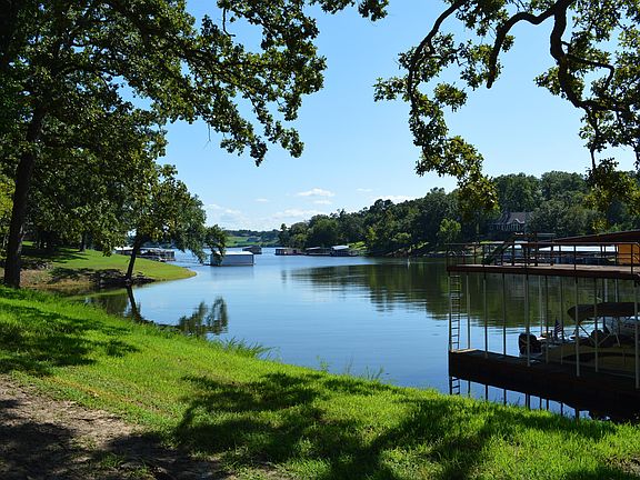 PRICE REDUCED-OUTSTANDING Waterfront all brick home, gentle slope just off Honey Creek, nestled w/ other nice homes. Open living w/high wood ceilings, large kitchen w/island & huge stove. Split floor plan w/3 living areas for all your family & friends. Appx 4 acres m/l to be determined by survey, w/over 485' WF, 4,471 SF home PLUS 837 SF guest house, 6 BR, 6 BA, enclosed 2-slip dock, & attached 2-car (23' X 22') garage. Detached garage is 2,240 SF under cover (40' X 40' w/40' x 16' equipment lean to), red iron w/11' tall, 12' wide overhead door. Covered patio lake side 910 SF, 634 SF wood deck, 294 SF entry patio. Additional adjoining 13 acres available at extra cost w/bunkhouse & barn & loafing shed for horses.