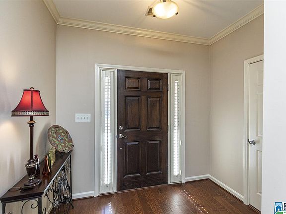 Immaculate 3BR/2BA 4-sides-brick in great Hoover location. Enjoy convenient one level living with an open floor plan in this beautifully maintained home that has been freshly painted inside. New hardwood floors, a vaulted ceiling, arched windows and neutral colors w/lots of crown moulding create an elegant atmosphere ideal for entertaining. Kitchen features recessed lighting, pantry, island, tile back splash and new microwave. Just steps away is a spacious eating area plus separate formal Dining Rm w/chair rail. Ceiling fans in all BRs and Great Rm. Luxurious Master Suite has double trey ceiling & closet. Spacious Master Bath has vaulted clng, dual sinks, separate shower & garden tub w/block glass window. Large, fenced/landscaped back yard (lots of space to enjoy) + irrigation system. 2-car garage + floored walk-up attic offering appx 200 sq feet more space for storage. Hoover schools. Convenient to restaurants/shopping along Hwy 280, The Summit and only minutes to I-459. Call today.