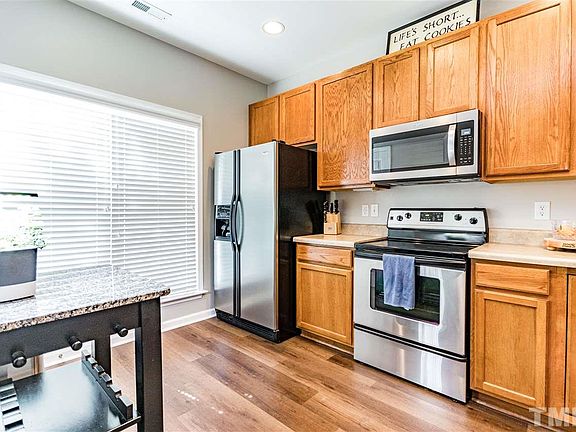 SPACIOUS Townhome in the Sought-After Bedford at Falls River, N. Raleigh. This home boasts beautiful New Luxury Vinyl Plank flooring throughout the main level, New Stainless Appliances, Open Floor plan, Dining & Living room w/fireplace. TWO Large Master Bedrooms, TWO additional lower level rooms great for OFFICE, 3rd BEDROOM, or Family Room, Full Bath, & Patio. Fresh paint and carpets have been cleaned, ready to move in. Relax on the deck, backs to woods, enjoy the pool, tennis, playgrounds & Greenway!!