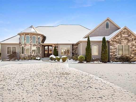 Hey guys, let's talk garage! This one is a 4 car and one bay is built out for a car lift including reinforced concrete, electrical & ceiling upgrade, and wired for music! The deck is also wired for outdoor music where you can enjoy the salt water hot tub by the outdoor fireplace. Large covered deck is maintenance free with ceiling fans. Yard is sprinkled and fenced with secure tamper proof doggie door. No neighbors behind you, and back yard extends well beyond the fence (3.5 acre lot) - would be ideal for an inground pool. Watch the sun rise from the owner's suite. Enormous walk in closet is attached to the laundry room and owners bath for convenience. Shower is floor to ceiling marble tile with dual shower head.
