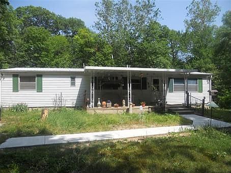 This 11 acre property captures a beautiful setting. Perfect for the outdoorsman with approx. 6 acres of trees and 5 mowed acres on 4 parcels. The Bantas Fork Creek runs thru the property like a resort for picnics, camping, atv, and horse back riding. The ranch style 1392 SF, 3 bedroom, 2 bath manuf. home features a large family room. Updates: furnace, sidewalk (2012) metal roof, submerg pump (2008) sump pump, gutters (2007) and AC in 2002. There are 4 out buildings (one with elec). Encl back porch (26x13)leads to lg basement for parties or work area. This property could also be a beautiful building site for a new home in a great location.