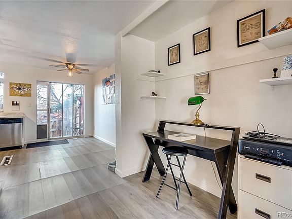 Beautifully updated home in a great neighborhood! This fantastic residence is surrounded by numerous nearby parks, trails, and Legacy Ridge Golf Course. Be the first to enjoy all of the fantastic updated this light and bright home has to offer including new plank vinyl flooring, and new kitchen and bathroom remodeling. As you enter in you are greeted by a welcoming living room featuring a cozy wood-burning fireplace with floor-to-ceiling wood surround. The gorgeous kitchen has been updated with new flooring, refreshed cabinetry, and stainless steel appliances, a new laminate countertop, and mosaic tile backsplash. Upstairs you'll find a beautifully updated 3/4 bathroom and two spacious and light-filled bedrooms with vaulted ceilings. The primary bedroom features skylights, serene backyard views, and a private ensuite bathroom that has been updated with new flooring, new vanity, and brushed nickel hardware. A private, fenced backyard with a deck is full of potential and is awaiting your finishing touches to be your oasis in the city. A community pool, reserved parking, exterior maintenance, water, and snow and trash removal are all apart of the very reasonable HOA! Great location just minutes to shopping and dining and easy access to highways and public transportation for a painless commute.