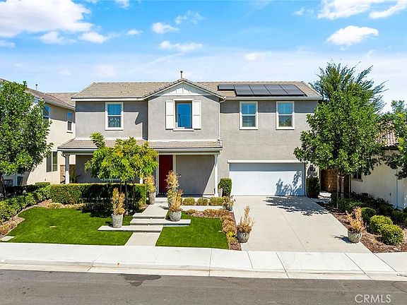 Discover this DESIGNER-FURNISHED, nearly new model home with 5 bedrooms, 3 baths, and an OWNED SOLAR SYSTEM in the desirable Spencer’s Crossing Community. (Furniture and Wall Art included). The main floor features a primary suite and a guest bedroom with a full bath. Enjoy the comfort of a whole-house Attic Fan System and 9-foot ceilings on both levels. This pristine home, previously a vacation retreat, includes LUXURIOUS UPGRADES throughout. The open-concept living area features a modern kitchen with granite countertops, pendant lighting, and a built-in speaker system. A sliding glass door opens to a covered California patio and landscaped backyard. Upstairs, find a spacious loft perfect for a theater or game room, plus 3 bedrooms, 2 with walk-in closets, and a full bath. Spencer's Crossing offers resort-style amenities, including pools, a spa, and sports parks. Zoned for Harvest Hill STEAM Academy K-8 and Liberty High School.