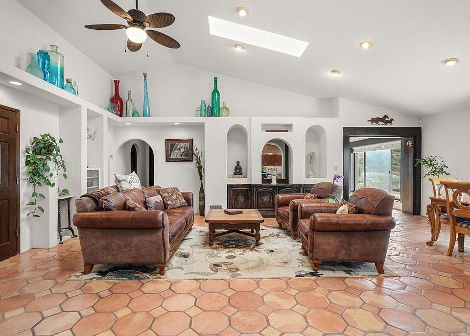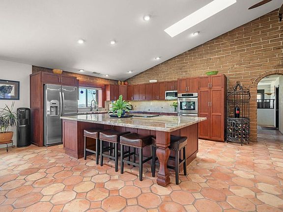 Welcome to your very own oasis—a unique adobe estate blending timeless charm with modern luxury, nestled on a sprawling horse property with breathtaking views in every direction. Step inside to discover a beautifully crafted home featuring wood beam accents, arched doorways and plaster walls that exude classic sophistication. Solid wood bedroom doors and distinctive octagon Saltillo tile floors add character and elegance throughout. The heart of the home is an expansive kitchen, boasting a huge center island that faces both the family and living rooms. Equipped with a state-of-the-art Dacor induction cooktop with a pop-up fan, double oven, microwave, soft-close drawers and granite countertops, this kitchen is a chef’s dream come true. Cozy up in the family room where a fireplace with Heatilator panels provides warmth and ambiance, perfectly complemented by plantation shutters that grace both the family room and bedrooms. Modern amenities include a whole-house fan and an automatic attic fan, ensuring comfort in every season. The garage features epoxy floors and convenient pull-down stairs to attic space. The property is designed for both equestrian and everyday living. For your equine companions, enjoy a dedicated sand arena and a well-appointed barn complete with four horse stalls—two of which offer in/outs and fans on timers - matted floors and four versatile box rooms ideal for storage, a tack room or even a kitchen. The spacious center aisle is designed for tractor access, making barn management a breeze. Adding to the versatility is a charming one bedroom/one bathroom retreat perched above the barn perfect for guests or extended family. Surrounded by lush fruit trees and enclosed by a secure fence with two electric gates and a concrete wall on one side, this property offers complete privacy without sacrificing convenience. The expansive outdoor space features a large concrete patio—ideal for dancing under the stars—complete with a wood-burning fireplace, built-in BBQ and unparalleled views to the west that will leave you speechless. With solar panels for sustainable energy and all the thoughtful details you could imagine, this property is a rare find that harmoniously blends rustic elegance, modern amenities, and equestrian facilities. Don’t miss your chance to experience the magic of this unique estate—schedule your tour today!