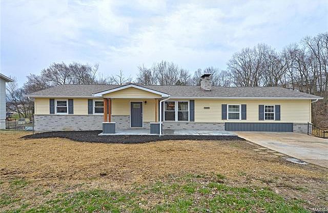 This tastefully remodeled ranch in Arnold in the sought after Seckman school District offer 4 beds/3 new full baths special amenities include a brick accent front elevation a open & split bedroom floor plan, main floor laundry,new flooring throughout,new updated lighting fixtures & fans,granite, walk-in closets in all bedrooms, 2 fireplaces,2 panel doors w/ brushed nickel hardware, & all new kitchen w/ shaker cabinets,backsplash,stainless steel appliances & a center island. This home sits on a 1.25 acre lot w/ an inviting patio & a foot bridge crossing the creek to get to the backside of the property. The lot is fenced in on 3 sides & can easily be closed in completely. There is a vaulted 4 seasons room with a built in entertainment center which overlooks the huge flat back yard. The lower level is finished w/ a family room w/fireplace & patio walkout,bedroom, & full bath. This home also has a detached 30x40 garage with electric,concrete floors, & water. Too much to list MUST SEE!