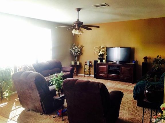 Classic Colonial ?Katonah? KB Home. 3 bedrooms + loft with 2.5 baths. Inspired by Martha Stewart?s homes in Westport, Connecticut. This home gives a fresh approach to the traditional Colonial style and it's a corner lot home with a fully landscaped backyard. Kitchen includes designer beech cabinets, and corian countertops.This is a beautiful home in the Olive Grove community of Perris! Amenities include: tiled entry way; living room and formal dining area; large family room w/ ceiling fan; corian countertops in kitchen w seamless sink and breakfast bar; large informal dining area adjacent to kitchen; HUGE bonus room upstairs for the kids with ceiling fan! Spacious master bedroom w/ media niche and view of the hills to the east. Spa jets in tub of master bath; separate tub/shower, dual sinks and walk-in closet. Large back yard with concrete patio pad. Covered front porch and dual garage doors. This is a wonderful value close to schools and good access to major transportation! See this home and submit your best offer today!