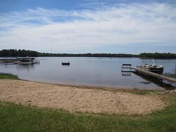 South facing 3 bedroom 2 bath home resting on one of the nicest beaches on Lake George. While you will likely find yourself outside a considerable amount of time, you will appreciate the upgrades and care this property offers. There is a new kitchen with hickory cabinets with open concept living room and dining area, allowing the family to gather and have full view of the water front. The wonderful wood burning fireplace with its appealing stonework provides entire house heating. The lower level walkout includes a family room with gas fireplace, full bath and a large bedroom (no ingress/egress window). Newer high efficiency furnace, A/C, and hot water heater allows for less worries and more time on the lake. The patio doors on the main level lead to a sun filled lake side deck. 26x40 detached garage with workshop, landscaping, lake side storage shed (boathouse) and fire pit are additional bonus's this home has to offer on a full recreational lake just minutes from Rhinelander.