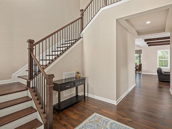 Luxury living with top-rated schools! This executive home built by Drees sits on a private cul-de-sac, backing up to a beautiful green space. Open living with soaring ceilings, office with french doors, spacious laundry, master downstairs! Master bath features oversized soaking tub, separate glass shower, double vanities. The gourmet dream kitchen is equipped with high-end appliances & walk-in pantry. Entertain in the rec room or large covered patio! Designer finishes throughout.