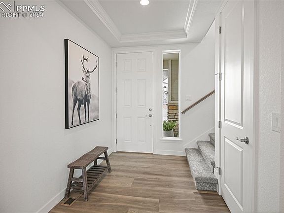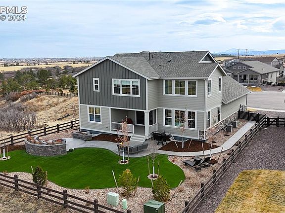 Nestled in the picturesque landscape of Castle Rock, this enchanting two-story home offers an unparalleled living experience. Featuring 5 bedrooms, 4 bathrooms, and a generous 3- car garage complete with space for workshop/bikes/toys, this residence seamlessly blends elegance and practicality. What sets this property apart is its idyllic setting—backing onto open space on 2 sides, providing not only stunning views but also ensuring a private sanctuary. The outdoor living space is a retreat in itself, boasting a fire pit with built-in seating on the patio and low-maintenance turf, creating an oasis for relaxation and entertainment. Step inside to discover a thoughtfully designed interior highlighted by an inviting fireplace with a custom surround, creating a warm and welcoming ambiance. Additional features include custom-built bench seating for added charm, Full unfinished basement is a blank canvas for you to do what you please! The gourmet kitchen, a paradise for chefs, showcases quartz countertops, white cabinets, and a large pantry, ensuring both style and functionality. Natural light bathes the living spaces, enhancing the modern design and making this home a truly comfortable haven. Castle Rock, known for its thriving economy and small-town charm, offers residents a unique blend of community and opportunity. With its vibrant downtown area, filled with local shops, restaurants, and entertainment options, Castle Rock provides the perfect balance of urban convenience and small-town feel. In keeping with eco-conscious living, this home is equipped with solar panels, ensuring energy efficiency and sustainability. Additionally, the garage features an electric car hook-up, reflecting a commitment to environmentally friendly practices. The community adds to the appeal with its array of amenities, including an outdoor pool, fitness center, community center, and a network of parks, trails, and open spaces.