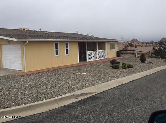Easy 3/2 one level manufactured home with delightful Arizona room offering huge view of Granite Dells and San Francisco Peaks. One car garage, attached storage, no maintenance landscape.