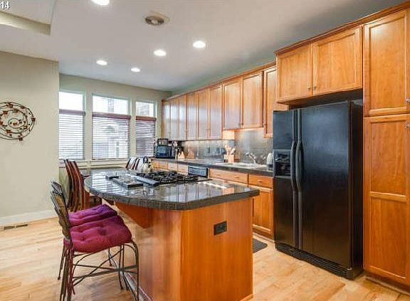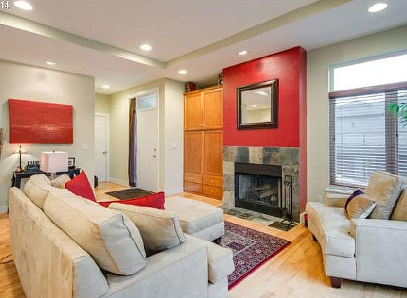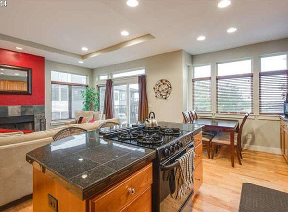 Contemporary with great room style living. Featuring hardwood floors, beautiful cherry cabinets, granite counters and gas cooktop. Cozy fireplace, private deck, nice territorial views. 1 car attached garage. Low HOA fees. Lower level w/den/office(currently used as bdrm), & master bedroom w/walkin closet. Spacious bathroom features double sinks, tile floors & counters. Easy access to downtown Portland, walking trails & local coffee/food.