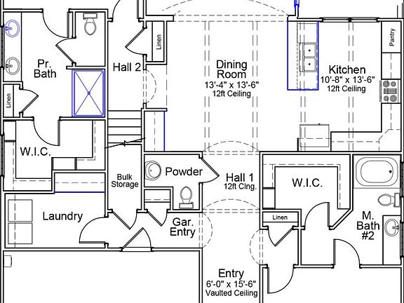 The Hartford plan has two primary suites located on the main level. From the elegant foyer with soaring 12' ceilings, arches, judges panels and 7 1/4" base boards to the indoor and outdoor gas fireplaces this home has it all. The white kitchen cabinets have soft close construction, waste basket cabinet, super pantry option, ceramic tile backsplash and brushed nickel hardware. The kitchen also includes gourmet appliances, pendant lighting over the countertop height island, under cabinet lighting, beamed ceilings and is wide open to the dining area which also includes a matching butler's pantry. The great room has an arched opening from the dining area and has plenty of natural light from the many windows on the rear of the home that looks out over the covered porch. The main primary suite is located on the rear of the home and includes a 5' x 5" walk-in tile shower with shampoo shelves, corner seat and glass enclosure. You will also find a large double bowl raised vanity with drawer stack, linen closet, generous walk-in closet and enclosed water closet. The ceiling heights in the down stairs bedrooms are 10'. Upstairs is a generous third suite with a full bathroom. All bedrooms are carpeted and all bathrooms have tild flooring. Other features of this great home are a grilling pad with gas line for the grill, utility sink in the garage and a 42" garden tub/shower in the secondary primary suite and ceiling fans in the great room, both primary suites and covered porch and additio
