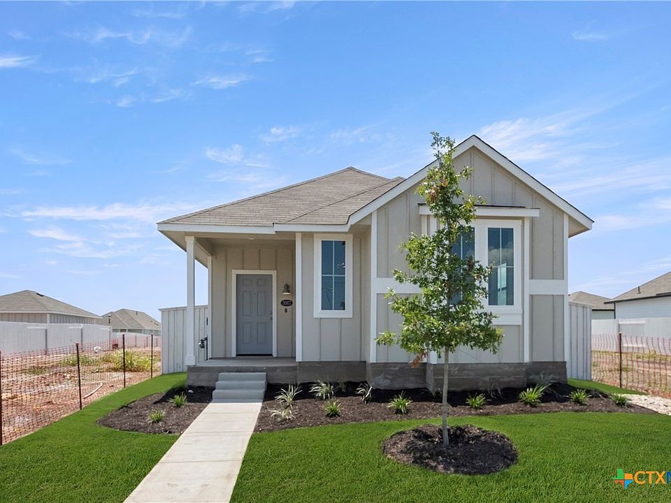 MLS 584785 - Built by Brohn Homes - Ready Now! - Located at 3067 Winding Creek Road in Kyle's premium community, Casetta Ranch, this one-story new construction home features a rear covered patio where you can wind down, an alley access lot, and a two-car detached garage. The home's interior showcases wood-look vinyl flooring throughout the main living areas, white cabinets throughout, and a tankless water heater. Inside the kitchen, you'll find 42-inch upper cabinets, 3 cm granite countertops, and a pantry, and the bathrooms all have raised bathroom vanities with Silestone countertops. Retreat to the primary suite where the walk-in shower and walk-in closet will make the everyday routine easy. And with walk-in closets at the secondary bedrooms and a walk-in storage closet you can maximize your space. Casetta Ranch, the award-winning community based in Kyle, is an oasis to relax. Explore the community amenity center, swimming pool, playground, park, or nearby restaurants. There's even a high school within walking distance. And because it’s an energIQ home built by Brohn, you’re getting more home, more quality, and more value—all without compromise.
