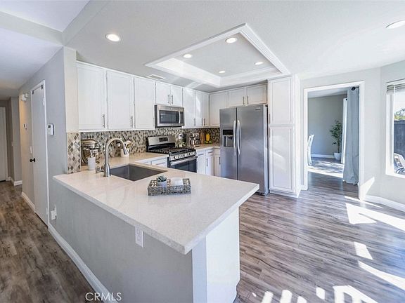 Step through the double-door entry to discover an open floor plan with newer plank flooring throughout—no carpet—and neutral modern tones, the perfect backdrop for your personal style. The main level features a spacious and versatile living area with a cozy gas fireplace and serene views of the lush front yard and private backyard. The adjacent kitchen has been remodeled with stainless steel appliances, large sink, and quartz countertops. Upstairs features two bedrooms and a spacious primary suite with vaulted ceilings. The suite also includes a walk-in closet and a skylight that brings in natural light. All bathrooms have been tastefully updated with sleek fixtures. Soak up the California sunshine in the tranquil backyard with year-round greenery. The water-wise artificial lawn and newer cement patio offer a clean, low-maintenance space—perfect for kids, pets, and entertaining. Relax in privacy, play sports, or simply enjoy the functionality of an outdoor space designed for family living. This prime location provides unparalleled convenience with easy freeway access and close proximity to award-winning schools like Temecula Valley High and Vail Elementary. You’re just minutes from the wineries, Old Town, shopping, and Ronald Reagan Sports Park with playgrounds, sports fields, splash pad, pool, pump track, and much more. Plus, you're in a coveted location to enjoy Temecula’s 4th of July fireworks! Don’t miss your chance to own this rare blend of classic charm and modern upgrades—an exceptional canvas for anyone seeking both comfort and elegance in a dream home.