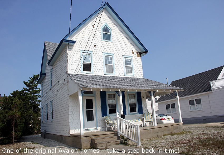 One of Avalon's original "grande dames" moved from 7th street years ago to rest across the street from the 30th street beach. Views like these are only enjoyed from an oceanfront or 2nd back beach block home. The home has been recently lived in by family members in the summer, spring and fall months. Family is selling the home in it's current condition and unfurnished. Ideal spot to build your future memories at the shore.