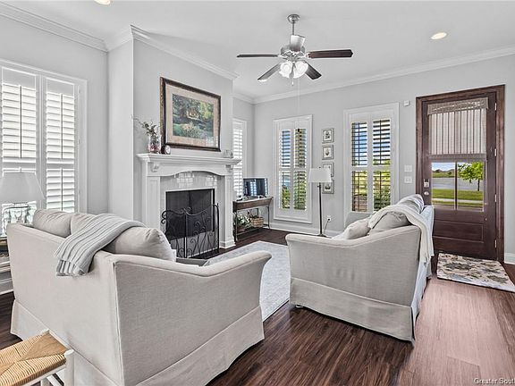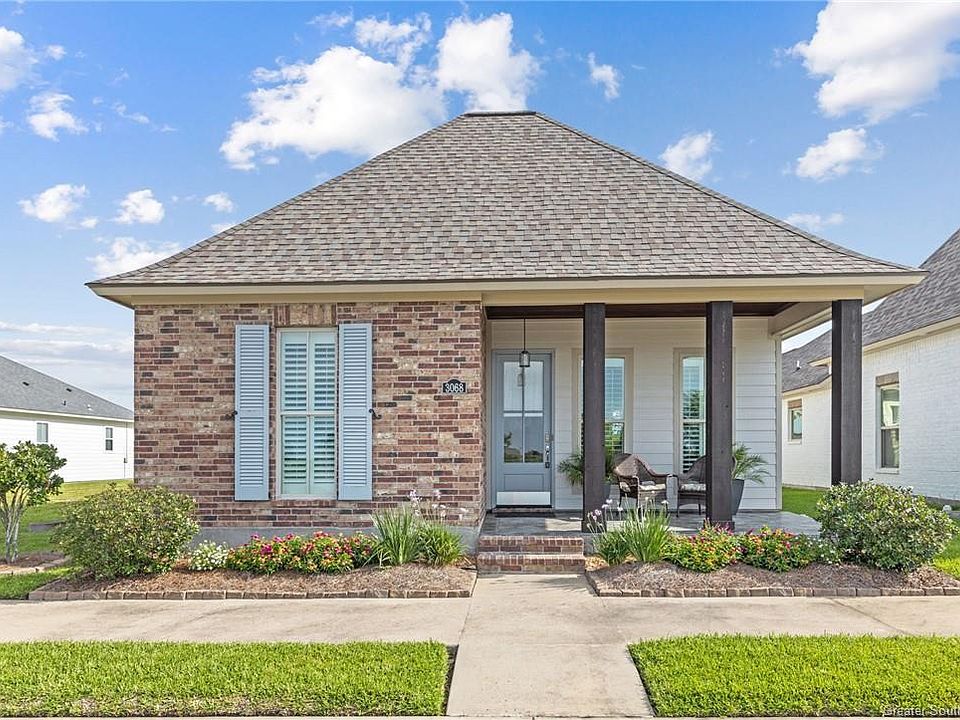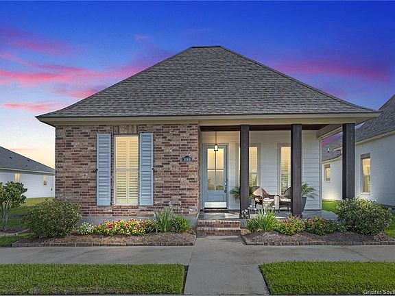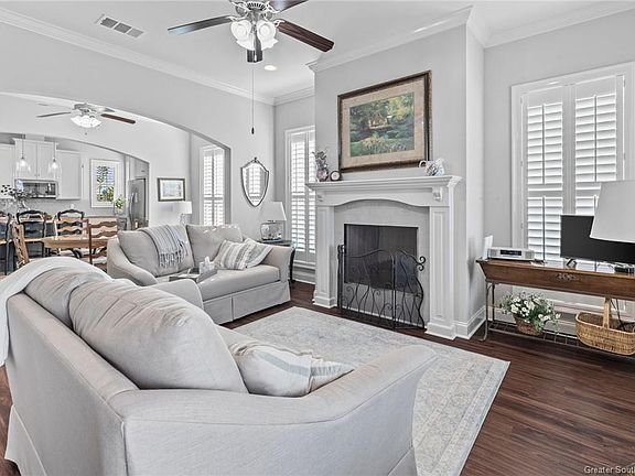 Don't miss out on this charming 3-bedroom, 2-bathroom home, immaculately maintained and perfectly designed with 1,559 sq ft of living space, nestled in the cozy Morganfield subdivision. This home is brimming with high-end upgrades for a luxurious lifestyle. The open floor plan showcases beautiful vinyl plank and tile flooring throughout, elevated by 10 ft ceilings, recessed lighting, crown molding, and custom plantation shutters. Every corner of this house spells elegance with granite countertops gracing each room. The kitchen is a culinary delight, equipped with stainless-steel appliances, a gas range/oven, a spacious island, and stylish subway tile backsplash, perfect for any home chef. The inviting living room features a cozy gas fireplace, creating a warm ambiance for relaxing evenings. The master suite is a private haven with dual vanities, a soothing soaking tub, and a walk-in shower. Outside, enjoy the serene charm of the front porch, a side porch, and a patio area for entertaining. Located outside of a flood zone, this home offers both beauty and peace of mind. Experience the comfort and sophistication firsthand--schedule your showing today!