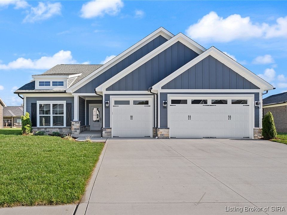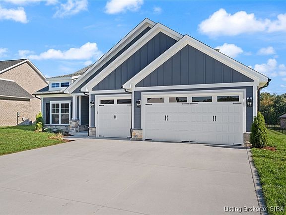 OPEN HOUSE SUNDAY 2-4 PM ** Introducing the **WINDSOR II PLAN** with an attached 3-car garage, presenting 4 spacious bedrooms and 3 full baths. Revel in the harmoniously integrated Kitchen-Great Room design, accentuated by a 10' coffered ceiling. Triple windows adorned with elegant transoms flood the space with natural light. The contemporary kitchen features a generous island bar, seating for three, alongside a roomy dining area that comfortably fits six—all crowned with sleek QUARTZ countertops. Seize the unique opportunity to **customize finishes to your taste**, making the space truly yours. With DISCOVERY BUILDERS, every home showcases superior design, spacious interiors, and high-quality finishes. Enjoy unparalleled features such as SPRAY FOAM WALL INSULATION, a luxury owner's bath, an expansive walk-in closet, and a covered patio or deck. Nestled in Bridlewood, NEW ALBANY'S freshest residential enclave, benefits from the convenience of local shopping, and swift I-265 access, and is just a quick 15-minute drive from all four Louisville bridges. Experience homeownership tailored to you with the DISCOVERY BUILDERS difference! #DiscoveryBuilders