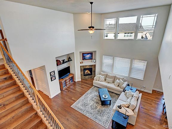 This home is amazing! Located on a desired corner lot, the views of the bluffs and the sparkling city nights are impressive. The home has been recently updated, with new exterior and interior paint, hand scraped wood plank floors throughout, updated bathrooms. When entering the home you notice the high 2 story ceilings, the numerous windows with views of the northern/eastern bluffs. The large great room, open to the dining space and kitchen. Newly renovated light and bright kitchen is stunning with newly white cabinets, with upgraded display glass cabinets, crown and tiered tops, cabinetry lighting, white backsplash and signature quartz counters. The main floor also boasts a front flex room perfect for an office, formal dining or living or a playroom. There is also main floor bedroom and full bath. Upstairs the beautiful primary suite has vaulted ceilings, bluff views, updated bath and large walk-in closet. The three other secondary bedrooms are all good sized and the 2 full baths have also been updated. The basement is finished as a huge entertainment space, with wet bar, built-in office space and a 3/4 bath. The semi-finished space has been turned into a home gym. Other great features - tankless water heater, new toilets, new lighting & fans. All this and the home is on a beautifully landscaped lot, with ample trees and shrubs, water feature, and space to play. In addition there is a deck with a view and a patio to entertain. This home is a must see!