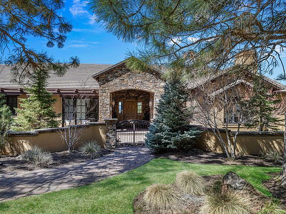 Unobstructed Cascade Mountain views are on brilliant display from this stunning single-level custom home on 1.38 private acres. A gated front courtyard w/ cascading waterfall sets the tone for the quality within. Soaring wood-beamed ceilings, glowing hardwood floors, dramatic stone fireplace & a wall of windows framing the mountains shining beyond. Gourmet kitchen features top-of-the-line everything; Blue Star range, Sub-Zero fridge, Shaw farm & prep sinks, Bosch & Fishel Paykel dishwashers, breakfast nook w/ built-in Miele coffee system, dramatic dining room & wine room w/2 CellarPro wine coolers nearby. Dreamy primary suite w/ fireplace & luxe bath w/ MTI bathtub, dual vanities & spa inspired shower. A cozy office w/ fireplace, window seat, & coffered ceilings adds warmth & elegance. Two refined guest en-suites in separate wing. Even the laundry & mudroom are designer-appointed, blending function & style. This home is a rare blend of tranquility, sophistication & intentional design.