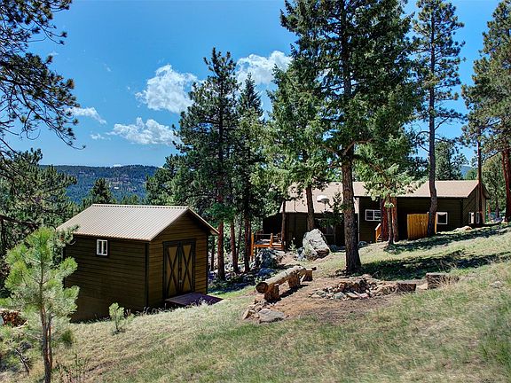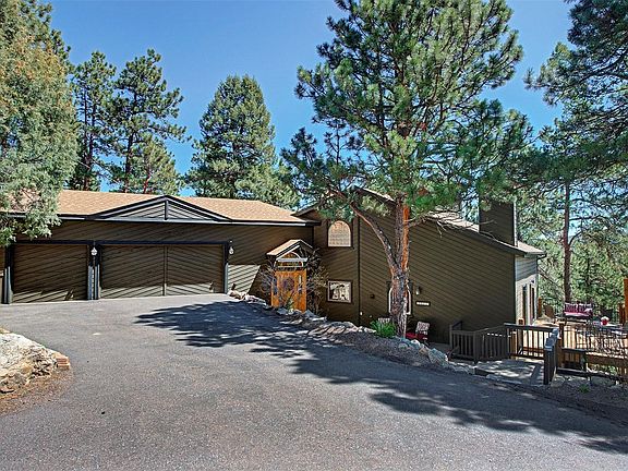 This very charming light-filled home sits on a lovely and private 1.6 acres that borders Alderfer/Three Sisters Park. This is a rare opportunity to hike or bike right from your driveway! Wonderful sunny living spaces include a vaulted living/dining room, and a large family room, both with beautiful tongue & groove beetle-kill wood ceilings. Both rooms have fireplaces & decks with lovely views & privacy. Main level is all new wood flooring. Slab granite kitchen with stainless appliances and a darling breakfast table. Master has a gorgeous master bath with jetted tub & brand new walk-in shower. Private deck off the master is perfect for morning coffee & viewing wildlife. 3-car garage with work benches and a hand-built storage shed for all your toys and tools. Lower walk-out level too. Beautifully maintained both inside & out with many upgrades. This lovely home has the perfect mountain touches in a very special, peaceful and idyllic setting. And just 3.3 miles to downtown Evergreen!