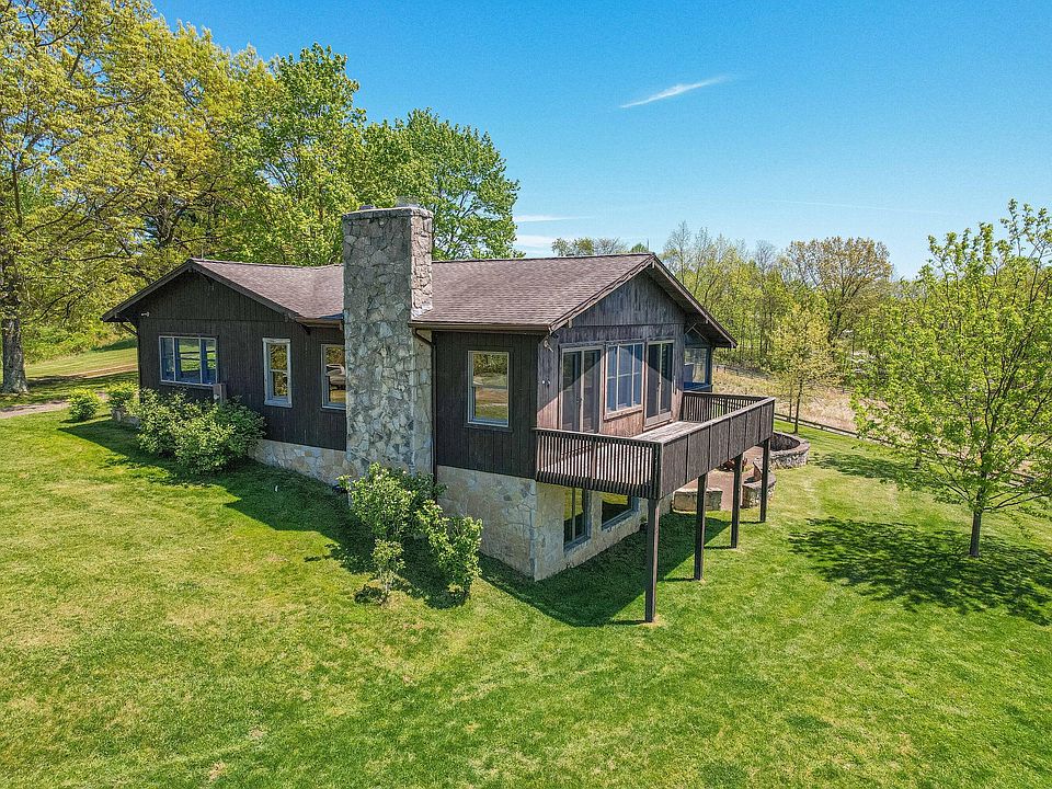 20-acre private retreat nestled in the heart of Hocking Hills, Ohio! This rustic, lodge-style, 3-bedroom, 2-bath home is just a stone's throw from the natural wonders of Hocking Hills State Park and Old Man's Caves. The 3,844 sq ft residence boasts hardwood floors, floor-to-ceiling wood-paneled walls, and wood-burning fireplaces. The main level offers a large living room, sitting room, a fully-equipped kitchen, an owner's suite, and two additional bedrooms accompanied by a full bath. Picture-perfect views of the surrounding countryside can be viewed from the large decks. A ready-to-be-transformed lower level provides ample opportunities to customize this home to suit your needs.  2-story barn w/horse stalls. 4.5 acres fenced pasture. No deed restrictions. Minerals transfer. Mature woods.