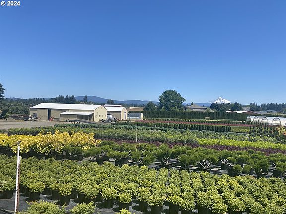 LOOKING FOR THAT PERFECT PROPERTY TO BUILD THAT DREAM HOME? THIS IS IT 5.98 AC CURRENTLY RENTED TO LOCAL NURSEY 2 40X70 AG BUILDINGS ONE WITH CONCRETE FLOOR AND 440 POWER 2ND WTIH SHOP AREA AND OFFICE /STORAGE AREA. 2006 SINGLE WIDE HOME TO LIVE IN WHILE YOU BUILD WITH A FANTASTIC VIEW OF MT HOOD. THE PROPERTY HAS A HIGH PRODUCING AG WELL. 9 30X60 HOOP HOUSES. THE PROPERY IS BORDERED BY MATURE CEDAR HEDGE.