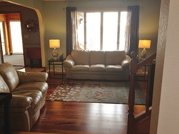 This 4BR/2BA lake home is extraordinary and is right off of I-35! It offers a huge kitchen with new stainless steel appliances, a 3 season sun-room with a T&G ceiling along with a master bedroom balcony overlooking the private lake. Brand new hardwood floors in the bedrooms and main family room. Downstairs you will find a cozy wood burning fireplace, a newly remodeled full bathroom, and a walkout family room to multi-level decks that have been recently resurfaced with restoration paint. In the lower basement, you will have tons of storage space with shelving, a recreation area and a new HW heater. Outside offers a shed, 2 car attached garage, bonfire pit, and 130 ft of sandy lake frontage on 0.81 acres. Heating is forced air propane along with the bonus of central air. Ten rooms have had floor-to-ceiling wallpaper removed and have been freshly painted neutral colors. This is an extreme make-over and is a must see! Call today! (218) 341-0473