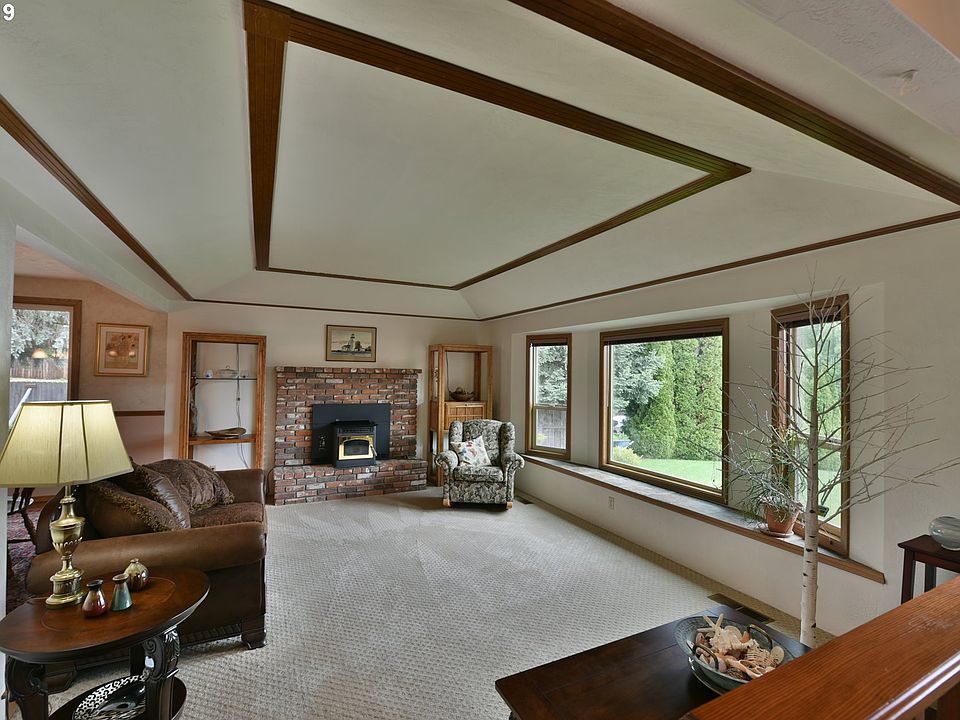 Meticulously cared for 3 bedroom 2 bath, 1657 sqft home located in a desirable East Medford neighborhood on a low traffic street. This home has new siding, new exterior paint, new vinyl windows, new garage door and newer carpet. This home features large bay windows with beautiful mountain views, a window seat, coffered ceilings, fireplace with wood stove insert and hardwood floors. The master suite has vaulted wood detailed ceilings.