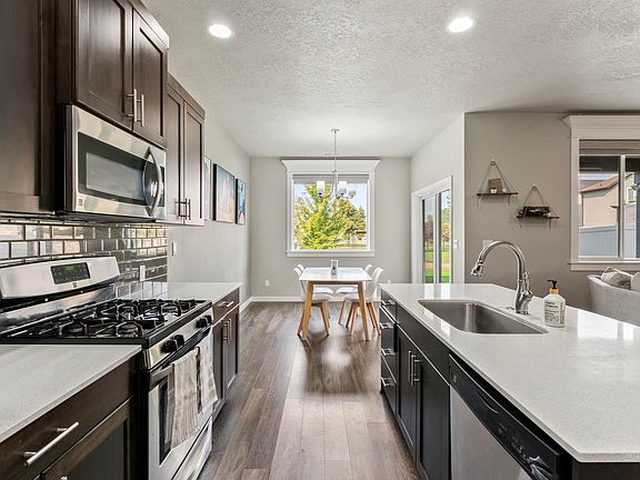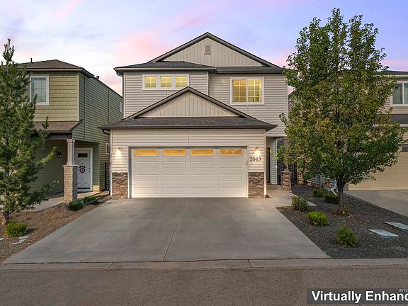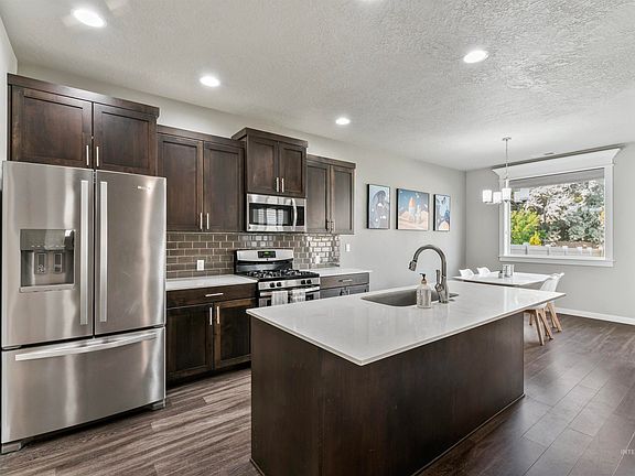 Welcome to the Sovi Subdivision, conveniently located adjacent to Tuscany in Meridian. This competitively priced single-family home is a rare find in the heart of it all. Built by Black Rock, the Tucson model offers four generously sized bedrooms, providing ample space for everyone. The kitchen is a chef’s dream, featuring custom stained cabinets, stone countertops, a large island, and a walk-in pantry. An upstairs laundry room is centrally located for convenience. Both upstairs bathrooms feature dual vanities with stone countertops, making your morning routine a breeze. The open downstairs floor plan is perfect for entertaining. Enjoy the covered patio or explore the community common area. Plus, the HOA takes care of all mowing and landscaping, so you can enjoy a low-maintenance lifestyle.