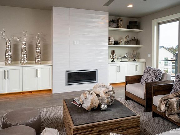 This spacious townhome you'll find tucked in Rivers Edge Village in a secluded new home community. Walk out your front door and be on the Deschutes River Trail within just a few steps. This community is close to shopping, parkway access and within minutes of The Old Mill District and Downtown Bend. The home features luxurious finishes, an open and airy floor plan with lots of natural light. In the Mahoney Plan you'll experience an open floor plan experience with space for entertaining, gourmet kitchen and large eating bar. The large master suite has a large tiled shower, dual vanity, large walk in closet, separate water closet, and the 2nd bedroom offers an en-suite bathroom, bonus space with a full bath and separate office. Great room with gas fireplace and built in cabinets. The large deck views of Pilot Butte, great for watching the fireworks. Included are numerous smart home features that complete this home. Photos are of actual home.
