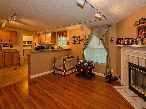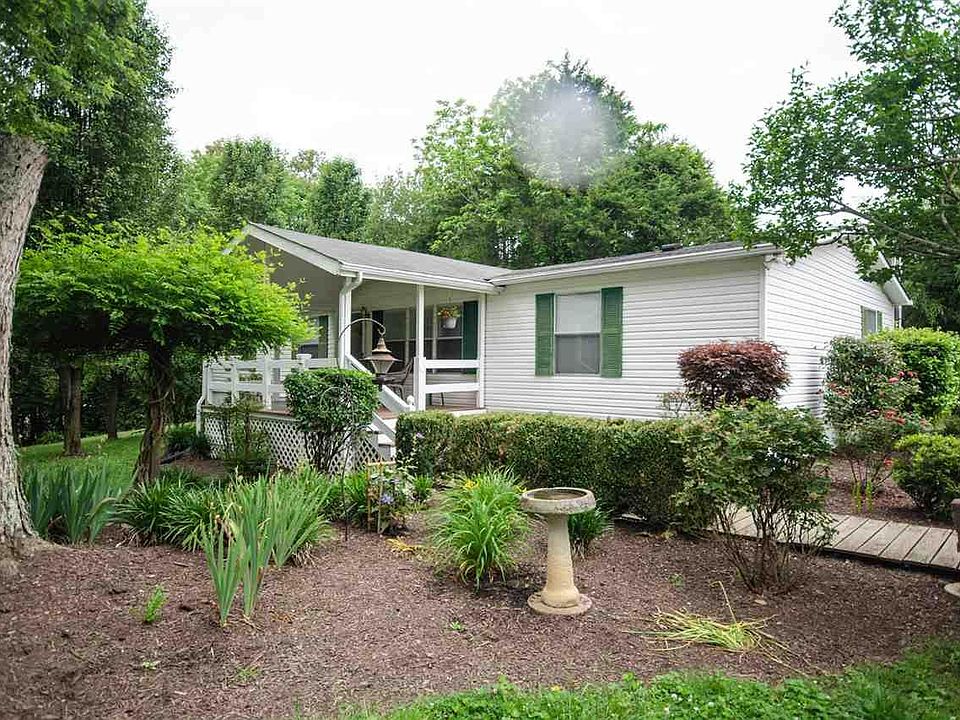 This lovely mobile home with great room fireplace (could be 2 rooms) large kitchen with solid surface counter tops, you can be in kitchen and see the fireplace while working, large dining room. Bedrooms are the very popular split plan with two on one side of the home and the master on the other side. Master (king size) has a walk in closet with very large bath with the other 2 bedrooms, one a bonus room and both having a walk in closet and a shared hall bath. There is a storage shed and over sized carport. Sitting on the covered porch looking out over your property, you will see your lovely flower gardens, trees and nature.