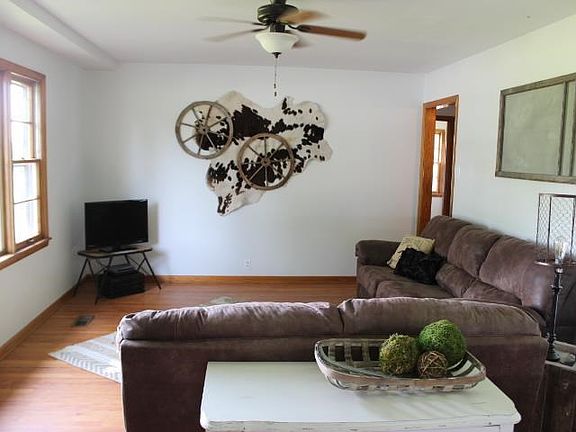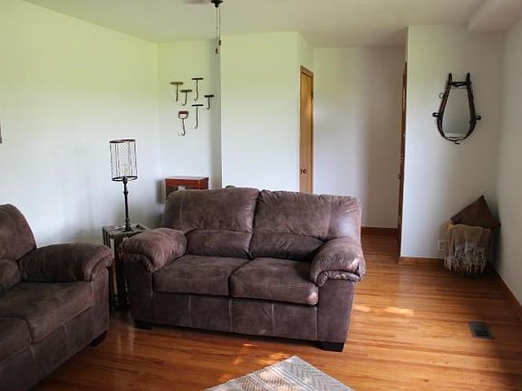 Awesome horse set up!! Great older barn complete with electric and water. Cute, cute, cute updated 2 bed, 1 bath ranch home with full walkout basement on 4.52 total acres"2.5 which is fenced for pasture! AND an awesome little cabin with stone fireplace-would be a great playhouse or ??? 1 car attached garage and 1 car carport. All of this with blacktop frontage and no restrictions! Hurry, it wont last long at this price! HSA home warranty included! Selling as is