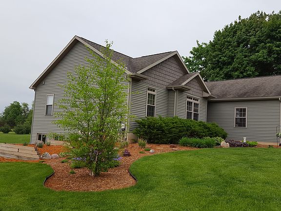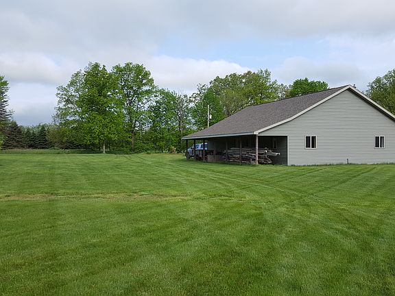 Gorgeous 3-bedroom craftsman home, mission style with custom oak trim and custom cabinetry thorough out. Master suite with ceramic tile shower, large walk-in closet with built in dressers and shelving. Guest bedroom and third bedroom/den with custom book cases and desk area with beamed ceiling. Mission style kitchen that has granite countertops, stainless steel appliances that all stay. First floor laundry, two car garage, 90% gas furnace with central air conditioning, gas hot water heater. Home has a bright basement due to four lookout windows that is plumbed for a full bathroom, wet bar and ready to frame in additional rooms. House comes with a 32x48 pole barn with a lean-to. Pole barn has an insulated wood shop with a forced air natural gas 90% efficiency furnace, water. House and pole barn are set on 2.5 acres.