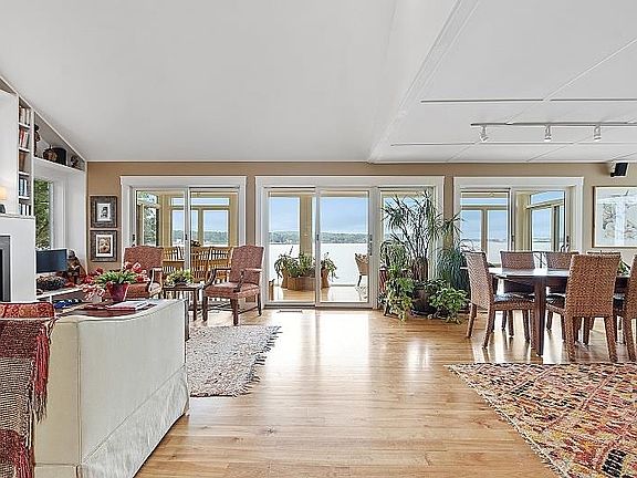 This 3,635 sf spectacular, architecturally designed, secluded, waterfront home with breathtaking sunrise views, was lovingly created in 2015 & features 4 bedrooms, 2.5 baths, a sunlit two-story family room, numerous library/unique art display built-ins, an office, a gym, tons of storage & an all-season glass porch with mesmerizing views of the Piscataqua River at the mouth of Great Bay and the lights of the Portsmouth skyline. Technical distinctive features include superinsulation, geothermal heat & central air. a heated 2-car garage, plaster walls & ceilings throughout, heated-floors on ground floor, red birch & marble flooring, Berber carpeting, a primary bath with a SteaMist steam shower + a dressing room. Solar photovoltaic panels provide 2/3 +- of energy for heat, cooling & power for both cottage & house resulting in energy costs of under $1,000/yr! Amazing! Outside, relax & enjoy the shaded deck & covered porch sweeping 30' across the water side, or sitting in your Adirondack chair on the lawn above the lovely dry-stone breakwater as you take in the recently built dock & float, and your boat at the deep-water mooring. You will love the truly adorable EnergyStar-rated 1173 sq ft, 2 BR, 2BA cottage for guests, extended family, caretakers, or renters. The cottage has a separate garage & parking, separate entrance, & private patios. Elevated above the floodplain, the home is grandfathered just 55 ft back from mean high tide. Showings begin 8/26!