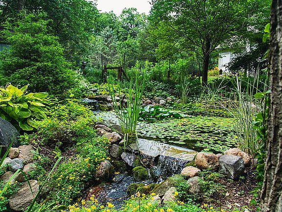 FOR SALE BY OWNER!! CONTACT KIM Text or Call 507-254-9353 | Buyer's agents welcome. This meticulously maintained 3200 sq ft home (2098 finished) is surrounded by an oasis of architected gardens with integrated pond and stream elements that have been featured on a number of garden tours. Enjoy the quiet solitude and sounds of nature on this 3.88 wooded acreage positioned on a cul-de-sac. Added benefits are river access, minutes from Rochester and Pine Island with a flexible choice of school districts. This home has received several recent updates and remodels resulting in a serene, artistic and modern living space. Accents include tile in bathrooms, bamboo on upper floor, hardwood and tile on main floor, Renewal By Anderson windows throughout home. Window seating, custom built-ins and cabinetry throughout the home provide beautiful contours and ample storage. Gorgeous gourmet kitchen with recessed lighting, quartz countertops, and tile backsplash. Family room with vaulted ceiling, sky lights and wood burning fireplace. Master bedroom with tray ceiling, walk-in closet, with ensuite bathroom with separate shower and soaker tub. Large, 1182 sq ft partially finished basement with egress windows to allow extra bedrooms; washer/dryer and easy access to new water heater, on demand water softener, Iron Curtain filter and dual-zone heating/air conditioning system. Spacious deck provides a great outdoor entertaining area with a commanding view over the rear gardens, water features and woods. Enjoy roasting food over the firepit while discussing all of the wildlife you’d seen during your stroll down to the river. 3 car attached garage, 2 external storage sheds, shared well and septic round out this unique homestead in a peaceful, pet friendly community.