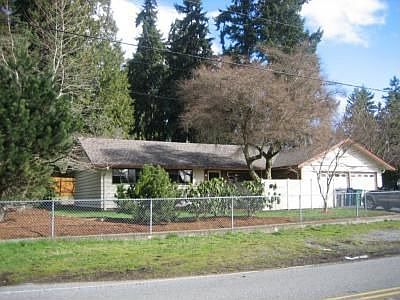 Well-maintained light-filled rambler situated on a level corner lot located on the County line and a short distance to Canyon Park; spacious living room; delightful kitchen with maple cabinets, tiled counter & floor; dining and family rooms off kitchen; frpl with woodstove insert; private bath off master bdrm; full guest bath; 1/4 bath (toilet) in large 2-car garage; large bdrm closets;power to outbuilding;beautiful fenced yard and large patio with bench seating;open floor plan;NOT a short sale!